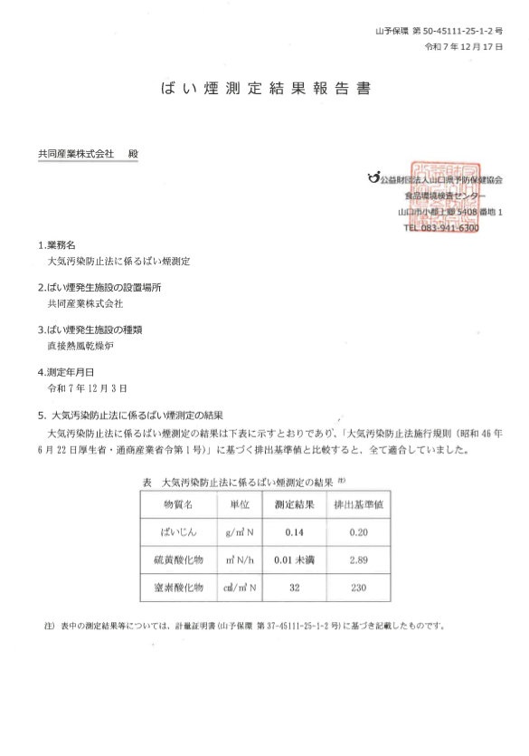 年2回のばい煙検査を実施しております。これにより、国が定めた環境基準の中で稼働出来ているかを定期的な検査によって確認します。b) 排煙減少の取り組み